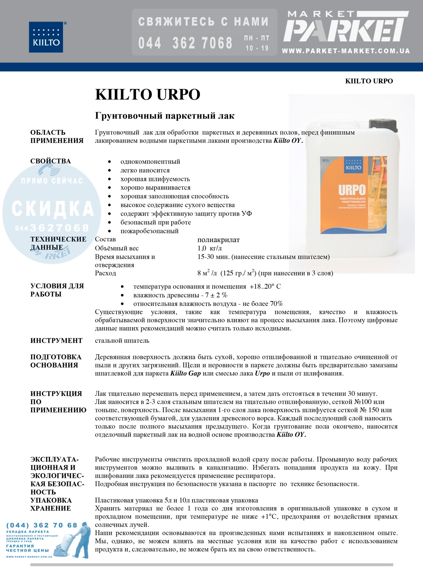 Грунтовочный лак для паркета и деревянных полов перед нанесением финишных лаков Киилто.